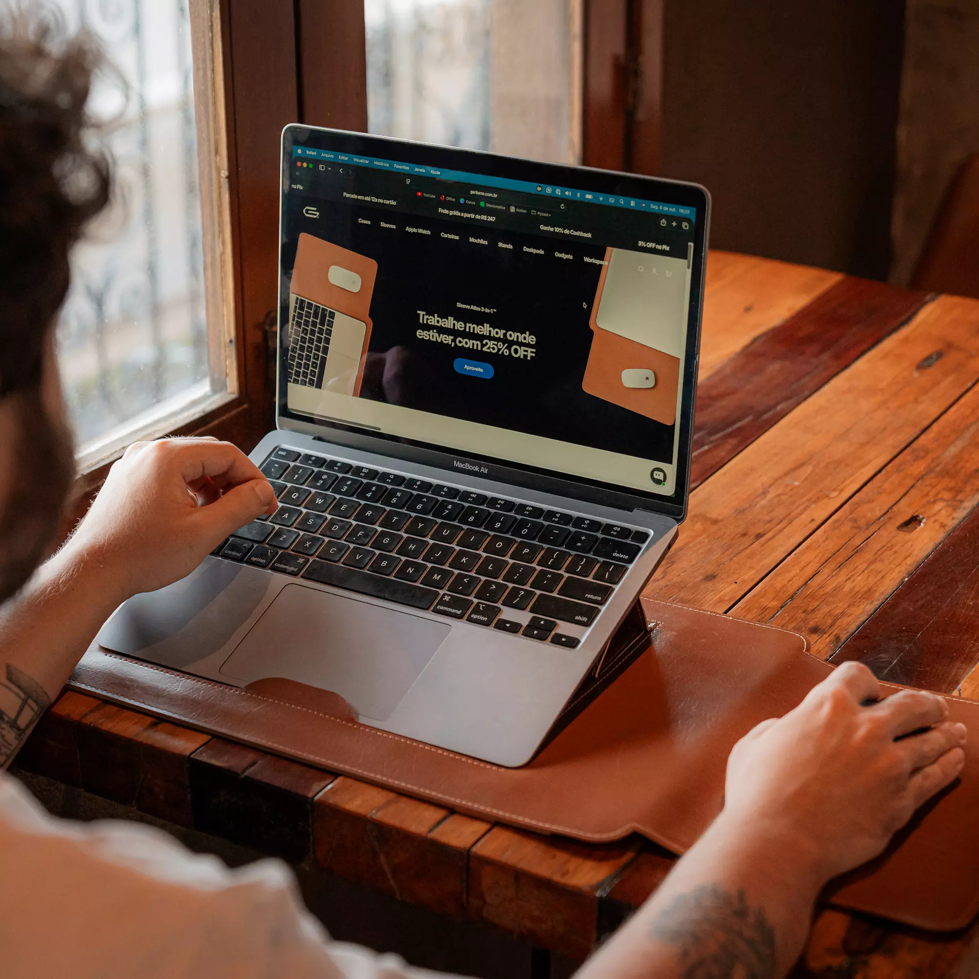 Abra sua Atlas, monte seu suporte e pronto. Depois disso, é só você, seu notebook e a liberdade de trabalhar em qualquer lugar.